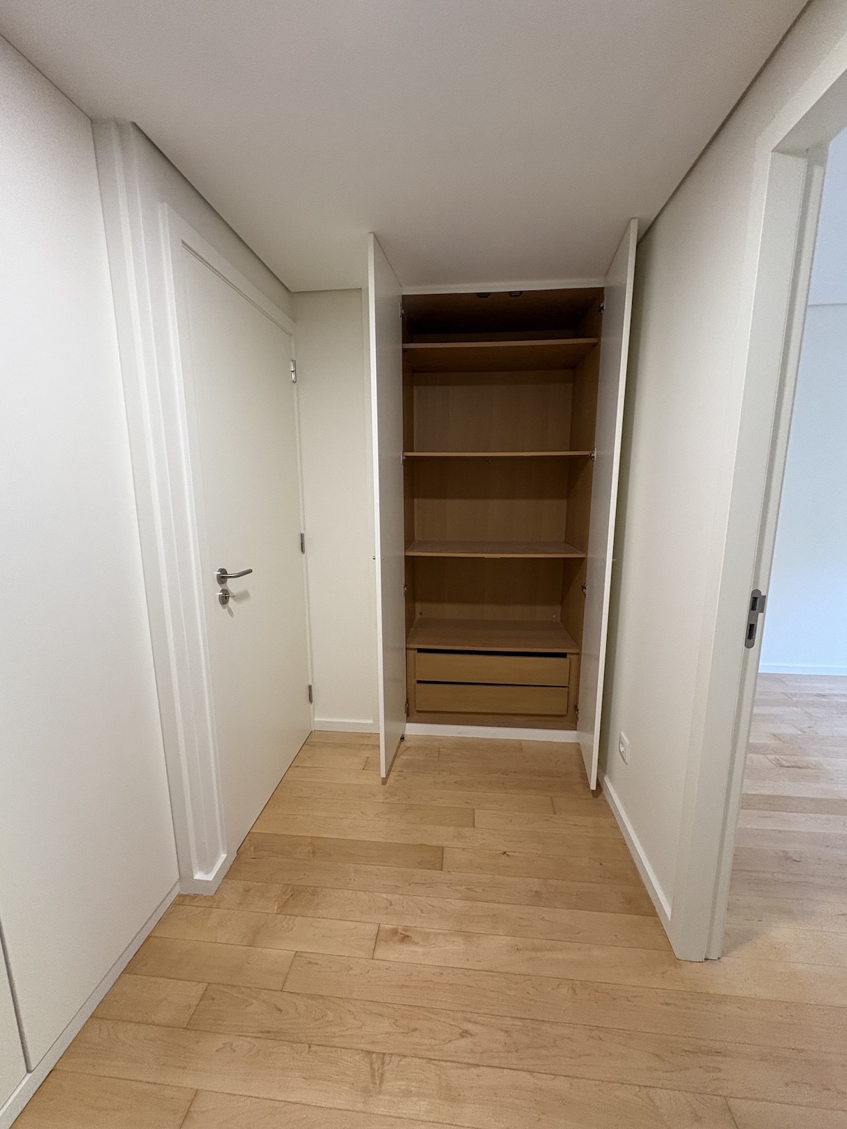 O apartamento tem 2 quartos, 2 casas de banho, cozinha, sala de estar/jantar e despensa. Está equipado com electrodomésticos de cozinha, máquinas de lavar louça e máquina de lavar e secar roupa. e devidamente mobilada. Tem ar condicionado, cortinados em todas as divisões e candeiros.